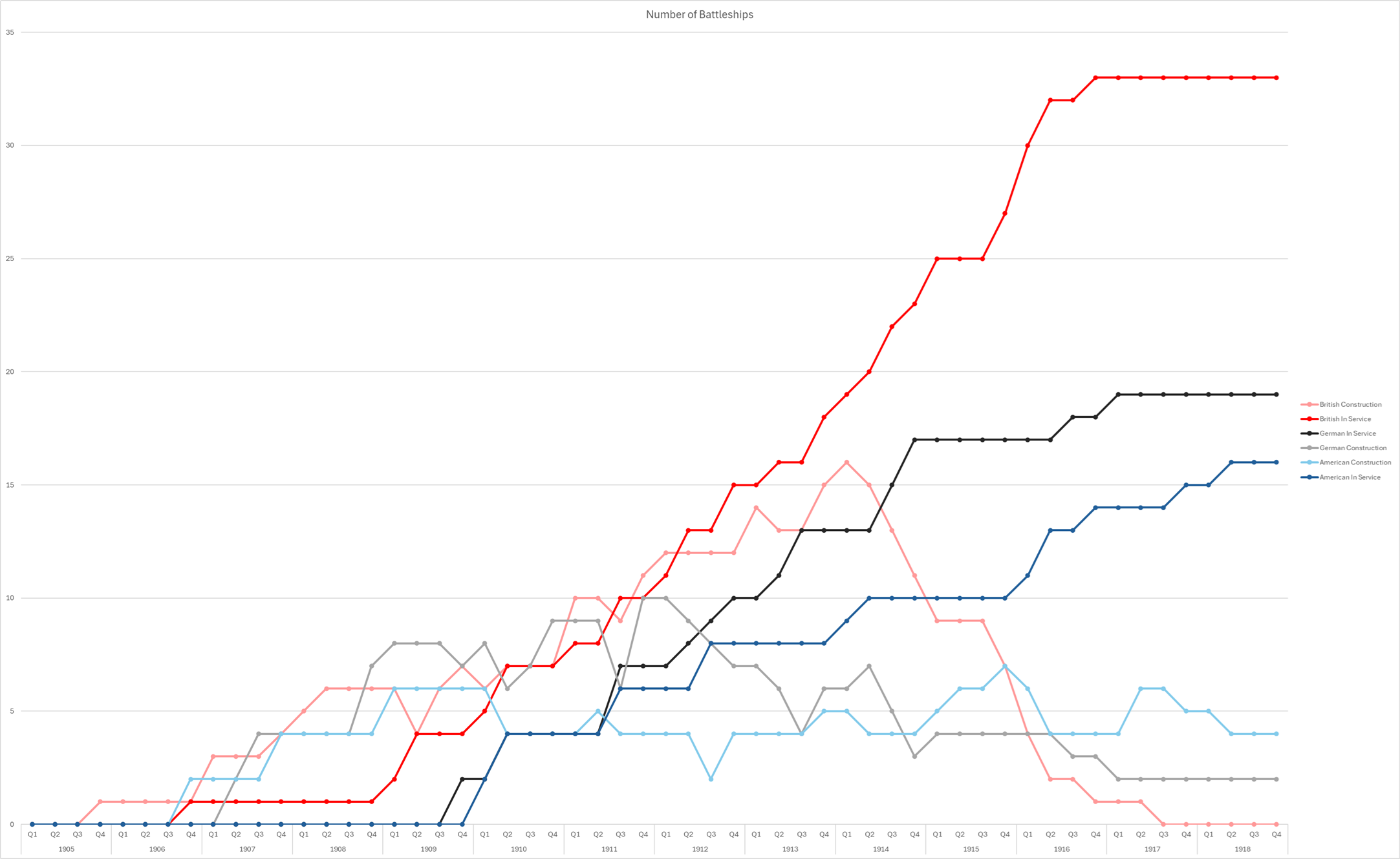 The Dreadnought Arms Race - In Charts Apr 20 Written By Warship Guide Ships in Construction and Service by Year Warship Guide